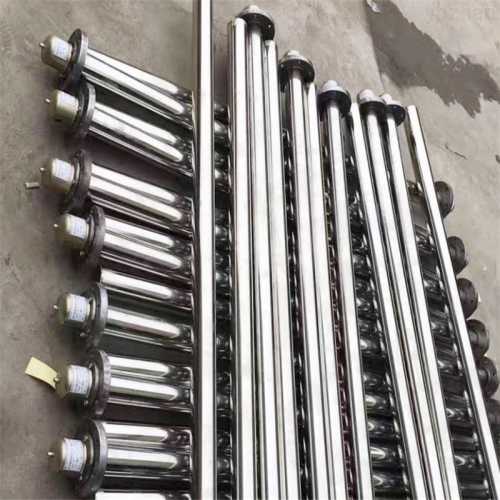 電熱管并在其周圍及空隙部分填入有良好耐熱性、導熱性和絕緣性的絕緣粉末(MgO),發(fā)熱絲兩端部具有引出棒或引出線接出。它具有結(jié)構(gòu)簡單,機械強度高、熱效率高、安全可靠、安裝簡便、使用壽命長等特點。廣泛適用于各種硝石槽、水槽、油槽、酸堿槽、易熔金屬熔化爐、空氣加熱爐、干燥爐、干燥箱、熱壓模等裝置。